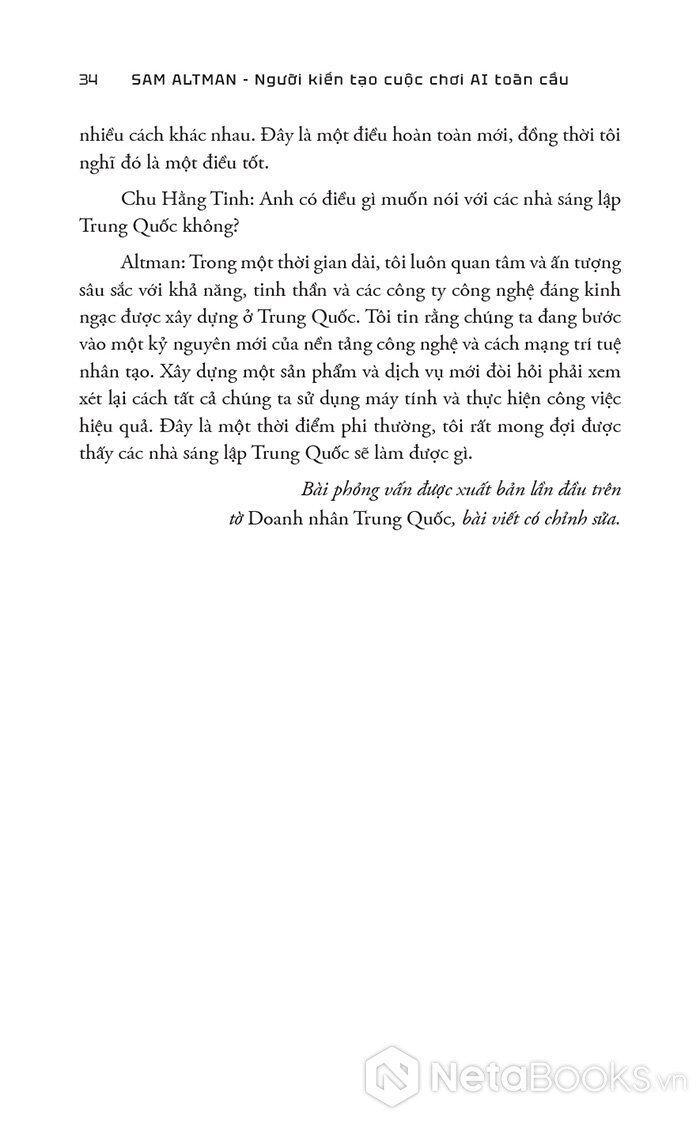Chu Hằng Tinh (Zhou Hengxing) – nhà báo công nghệ kỳ cựu, nhà sáng lập hãng truyền thông quốc tế Pandaily (2017), chuyên cung cấp tin tức về công nghệ Trung Quốc cho độc giả toàn cầu. Anh là phóng viên Trung Quốc đầu tiên phỏng vấn Elon Musk, từng là dịch giả bản tiếng Trung của “Elon Musk: Tesla, SpaceX, and the Quest for a Fantastic Future”. Với 12 năm kinh nghiệm theo dõi các công ty công nghệ tại Silicon Valley, Chu Hằng Tinh mang đến cho độc giả một góc nhìn nội bộ sâu sắc, đáng tin cậy và đầy tính nhân văn về Sam Altman.