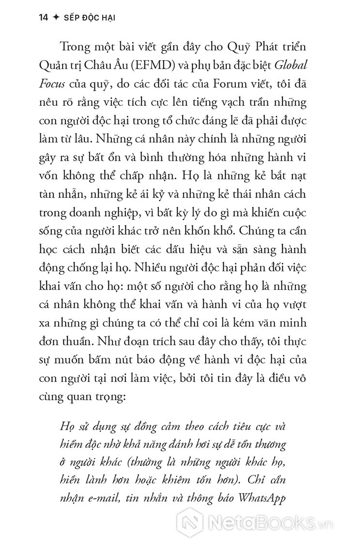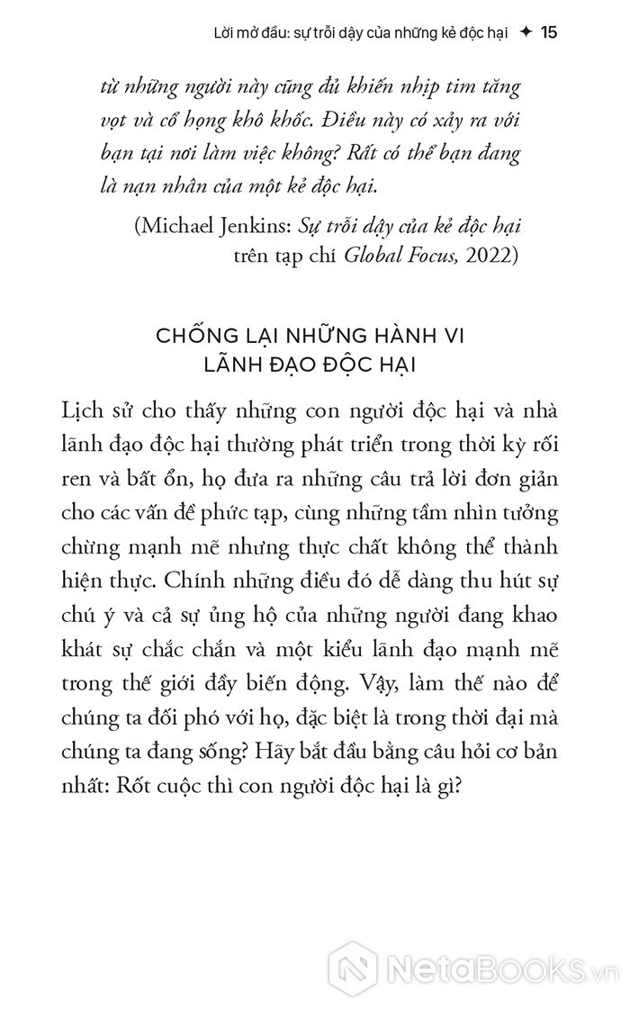 Trích dẫn sách Sếp Độc Hại - Nhận Diện Và Đối Phó Với Lãnh Đạo Độc Hại Để Bảo Vệ Tổ Chức - Michael Jenkins