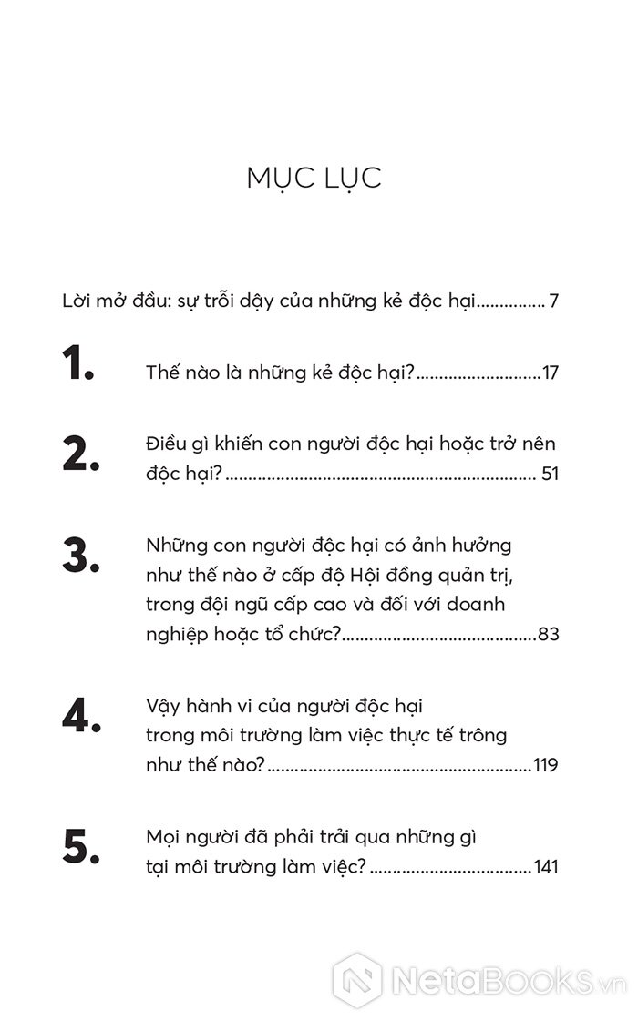 Mục lục sách Sếp Độc Hại - Nhận Diện Và Đối Phó Với Lãnh Đạo Độc Hại Để Bảo Vệ Tổ Chức - Michael Jenkins