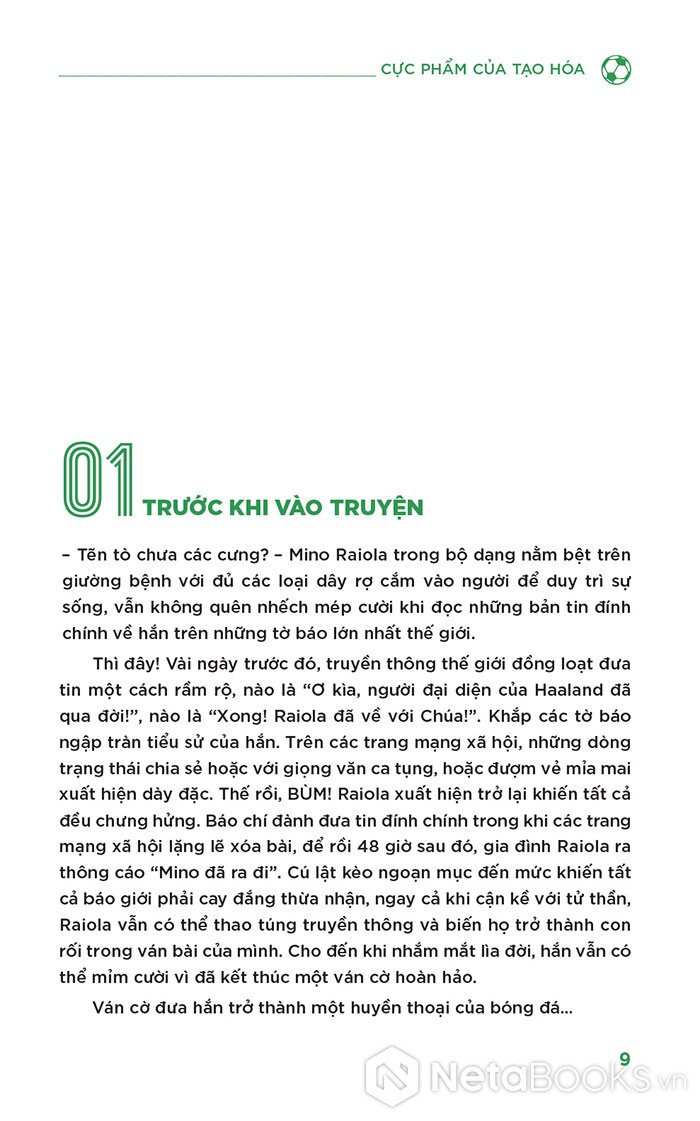 Mở ra thế giới của bóng đá đỉnh cao bằng những con người “được chọn”. Từ xuất phát điểm của những tài năng thiên bẩm, tác giả đặt nền móng cho câu hỏi lớn: Khi bóng đá trở thành ngành công nghiệp khổng lồ, ai mới là người thực sự quyết định số phận của những thiên tài ấy? Đôi khi, chính những cầu thủ triệu đô lại bị xem thường ngay sau lưng bởi chính những người đại diện của mình: “Mày là một con số 0, một thằng chết tiệt!”