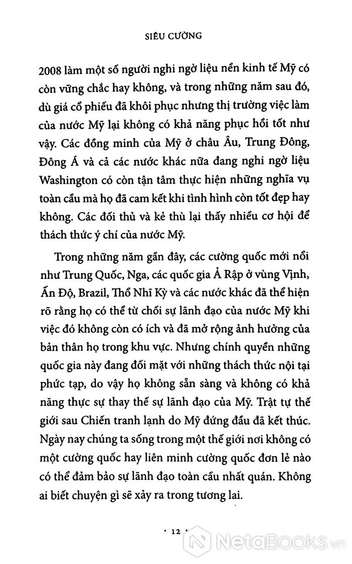 Sách Siêu Cường - Ba Lựa Chọn Về Vai Trò Của Hoa Kỳ Đối Với Thế Giới của tác giả Ian Bremmer, có bán tại Nhà sách online NetaBooks với ưu đãi Bao sách miễn phí và Gian hàng NetaBooks tại Tiki với ưu đãi Bao sách miễn phí và tặng Bookmark