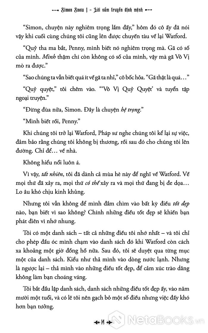 Sách Simon Snow 1 - Lời Sấm Truyền Định Mệnh của tác giả Rainbow Rowell, có bán tại Nhà sách online NetaBooks với ưu đãi Bao sách miễn phí và Gian hàng NetaBooks tại Tiki với ưu đãi Bao sách miễn phí và tặng Bookmark