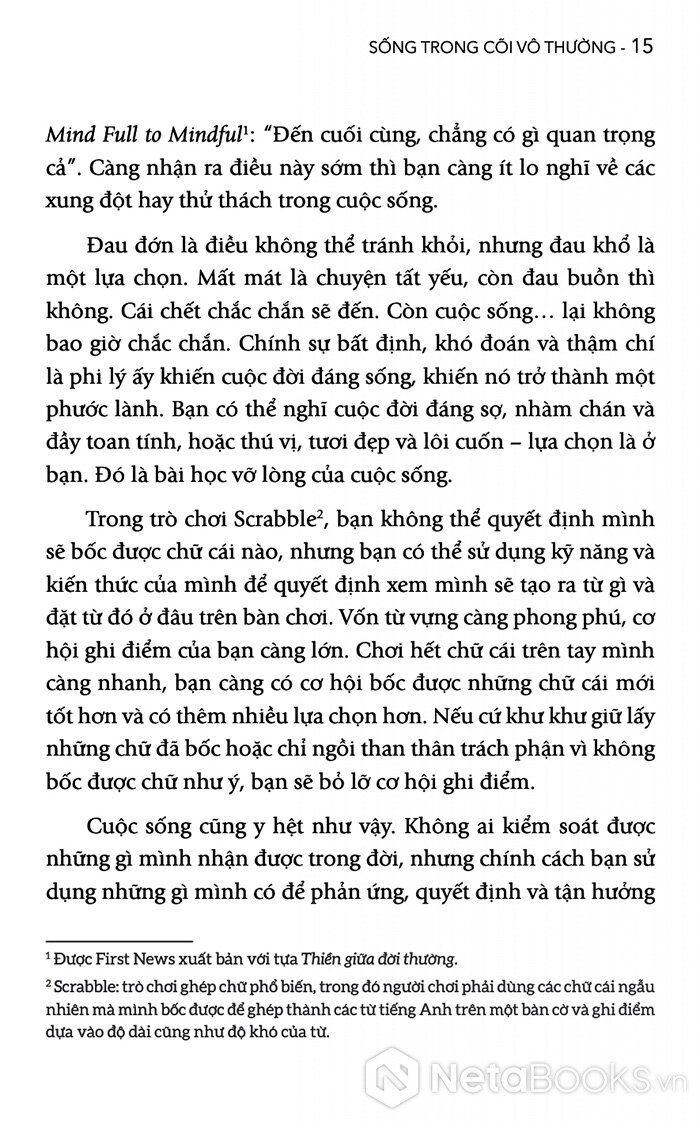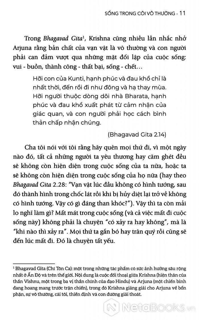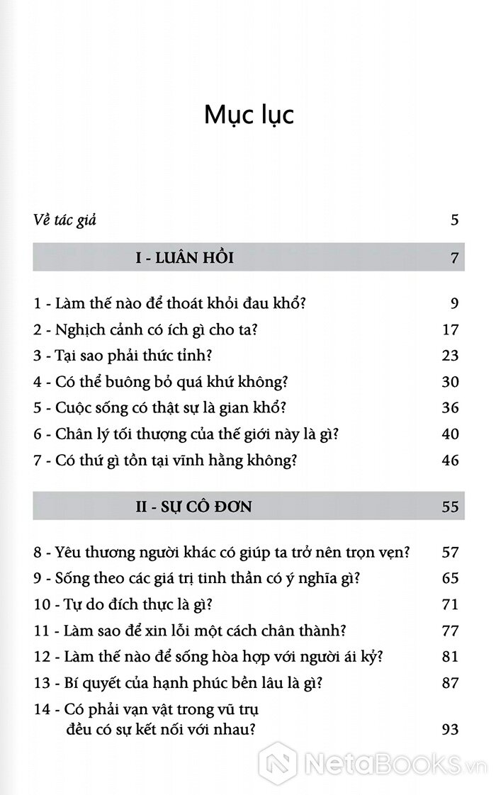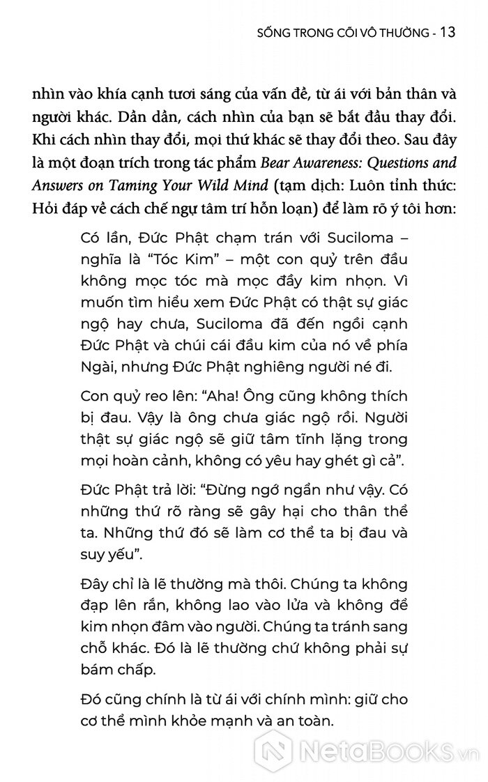 Ông nhắn nhủ với độc giả: “Cuộc đời vốn vô thường. Điều ta cần không phải là nắm chặt mọi thứ hơn, mà là tỉnh thức hơn”.