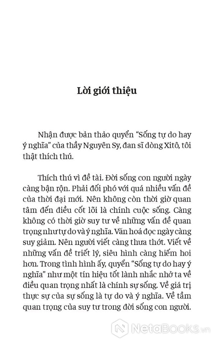 Sách Sống Tự Do Hay Ý Nghĩa của tác giả Nguyên Sy, O.Cist, có bán tại Nhà sách online NetaBooks với ưu đãi Bao sách miễn phí và Gian hàng NetaBooks tại Tiki với ưu đãi Bao sách miễn phí và tặng Bookmark