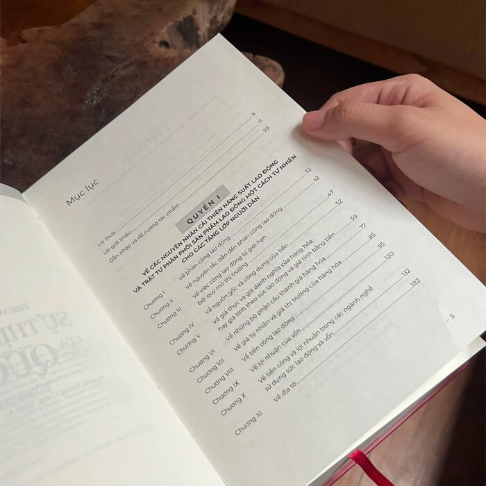 Quyển I: Về sức lao động. Ở phần mở đầu, Smith nhấn mạnh vai trò then chốt của phân công lao động. Ông đưa ra ví dụ nổi tiếng về xưởng sản xuất đinh ghim: nếu một công nhân làm tất cả các công đoạn, họ có thể chỉ làm ra vài chiếc đinh ghim mỗi ngày; nhưng nếu công việc được chia nhỏ và mỗi công nhân chuyên môn hóa vào một khâu, thì cả nhóm có thể sản xuất hàng nghìn chiếc.