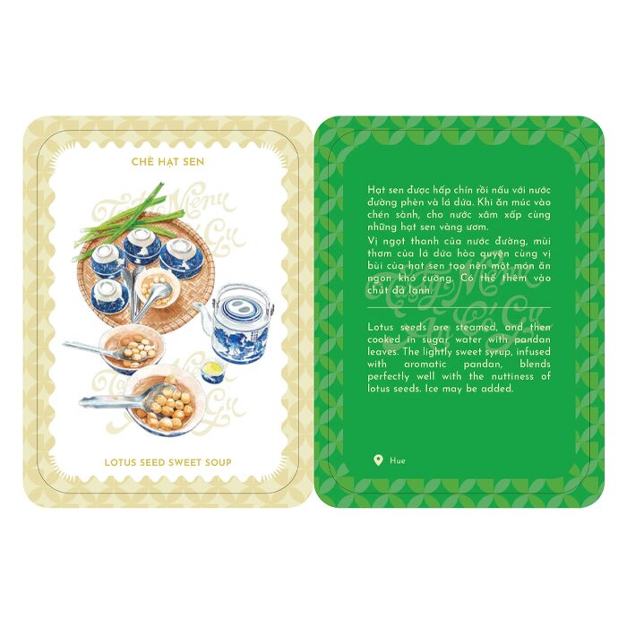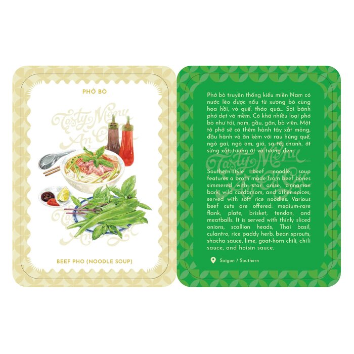 “Tasty menu - Ăn có gu” là một bộ thẻ bài song ngữ Việt - Anh của họa sĩ trẻ Lê Rin. Bộ thẻ là một bức tranh đa sắc màu, phong phú và đậm đà bản sắc của ẩm thực Việt. Bộ thẻ không chỉ là món quà gửi đến những bạn trẻ, những người Việt yêu ẩm thực Việt mà còn mang giá trị lan tỏa văn hóa Việt Nam đến với bạn bè năm châu thông qua thông qua những món ăn và thức uống đặc sản ba miền.