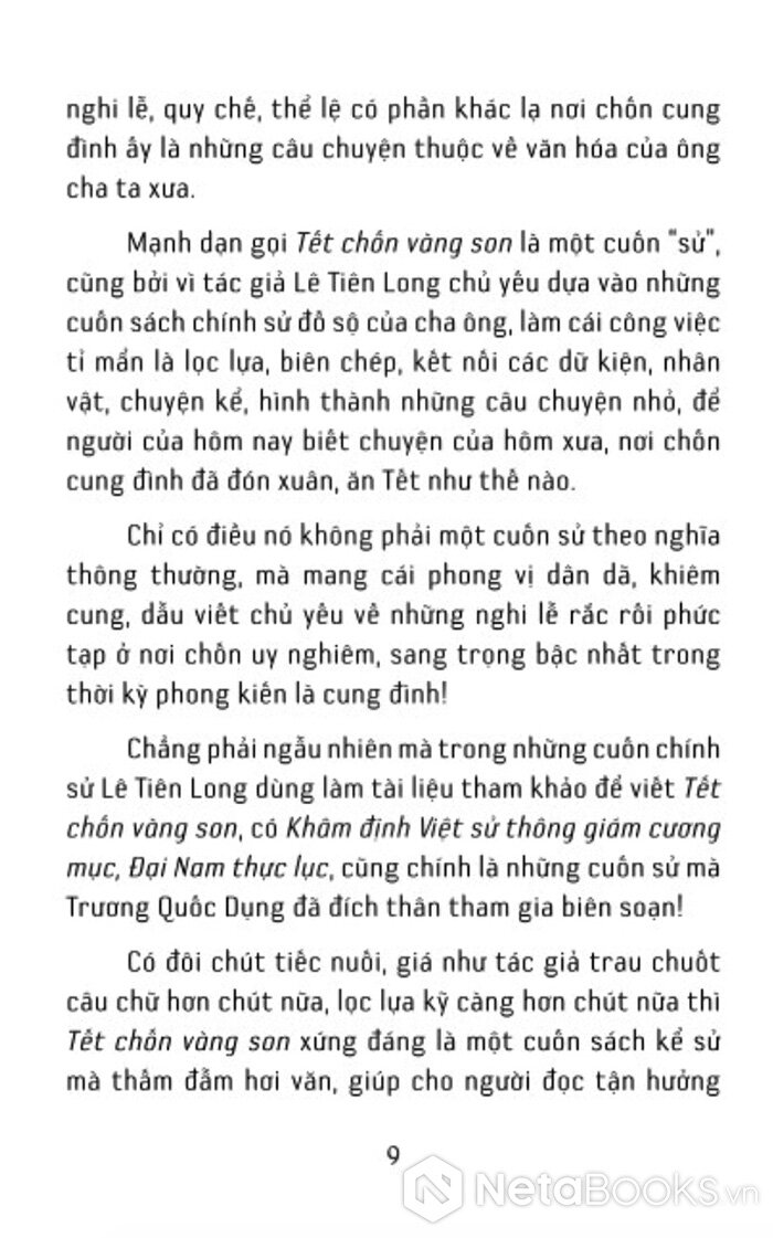 Sách Tết Chốn Vàng Son của tác giả Lê Tiên Long, có bán tại Nhà sách online NetaBooks với ưu đãi Bao sách miễn phí và Gian hàng NetaBooks tại Tiki với ưu đãi Bao sách miễn phí và tặng Bookmark