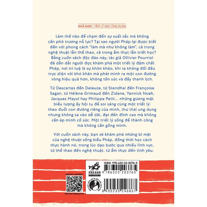 Làm thế nào để chạm đến sự xuất sắc mà không cần phô trương nỗ lực? Tại sao người Pháp lại được biết đến với phong cách “làm mà như không làm”, cả trong nghệ thuật lẫn thể thao, cả trong ẩm thực lẫn triết học? Bằng cuốn sách độc đáo này tác giả Ollivier Pourriol đã dẫn dắt người đọc khám phá một triết lý đậm chất Pháp, nơi trí tuệ là sự khôn khéo, khi ta không đối đầu trực diện với khó khăn mà phát minh ra một con đường vòng hiệu quả hơn, không tốn sức và đầy thanh lịch.