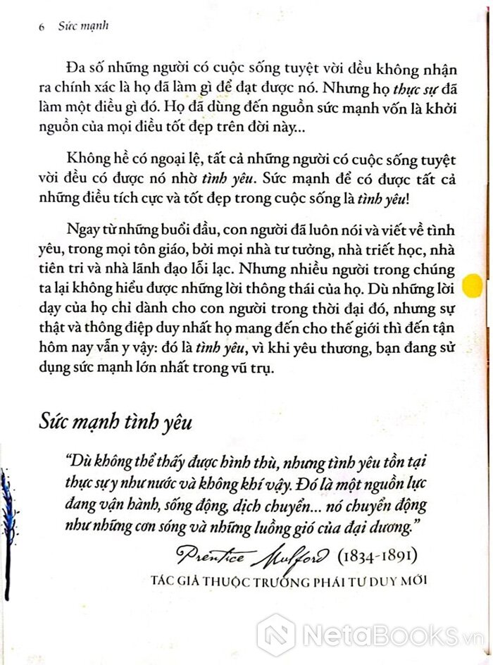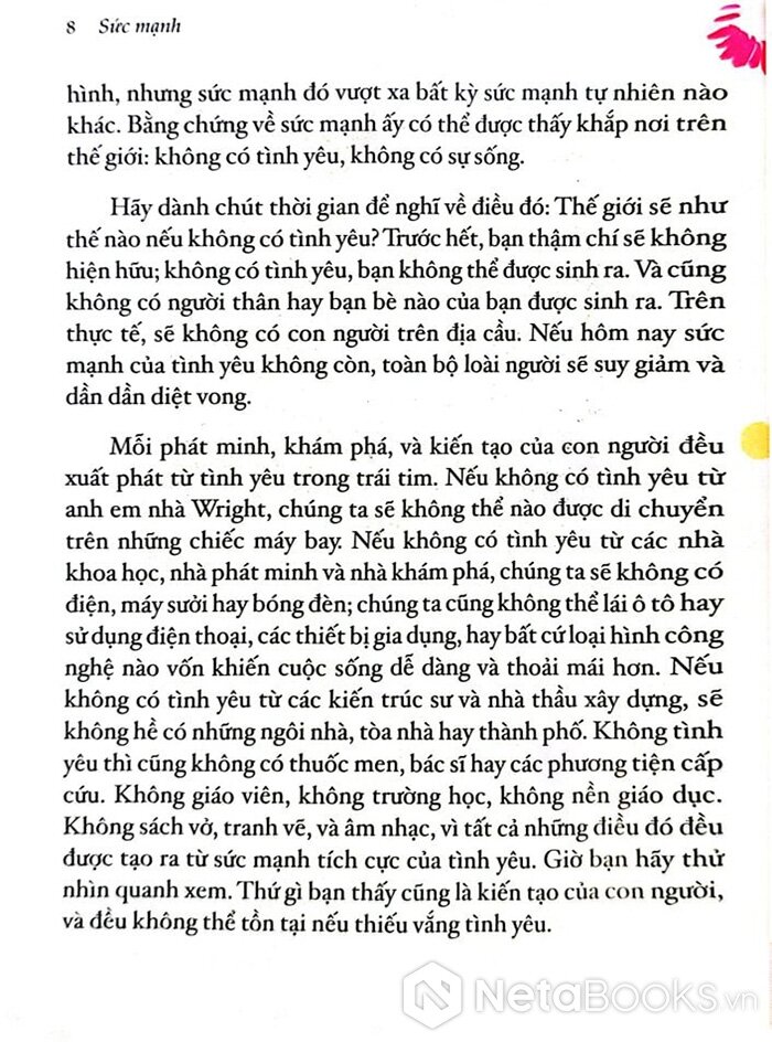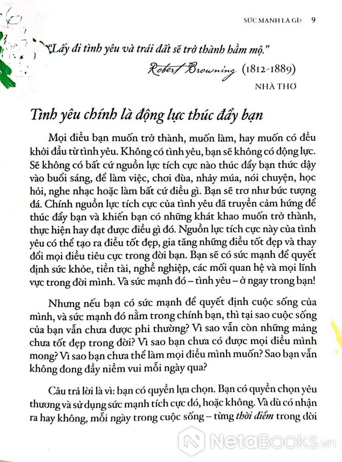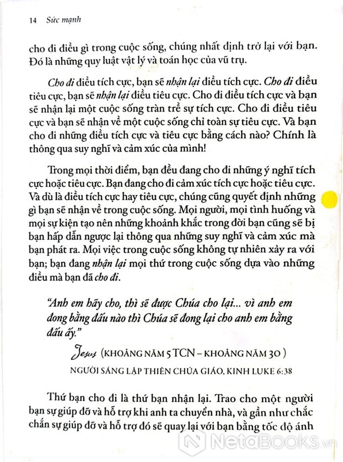 Sách "The Power - Sức Mạnhr" của Rhonda Byrne khẳng định rằng mỗi người đều có khả năng sống một cuộc đời phi thường, tác giả chia sẻ phương pháp để khai thác sức mạnh nội tại và hiểu rõ cơ chế vận hành của cuộc sống nhằm trải nghiệm sự đủ đầy và vui vẻ: "Hãy để phép màu thay đổi cuộc đời bạn."