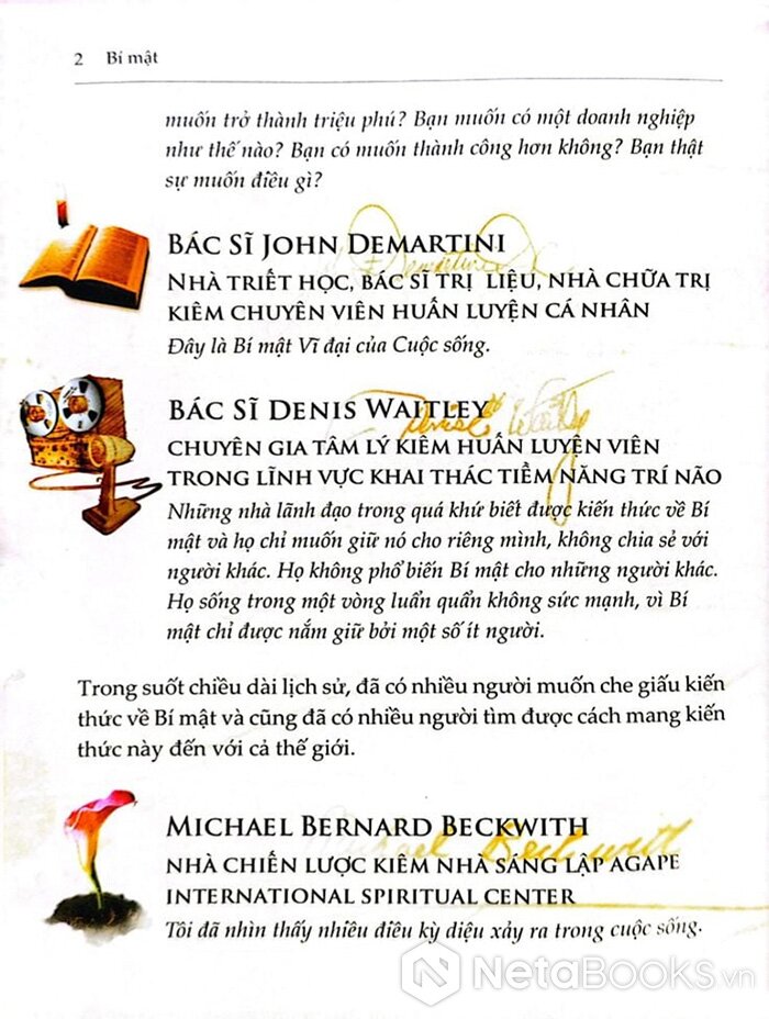 The Secret - Bí Mật đã chỉ cho mọi người cách thức để áp dụng kiến thức giá trị này trong cuộc sống của bạn ở mọi khía cạnh từ sức khoẻ đến giàu có, thành công và mối quan hệ.