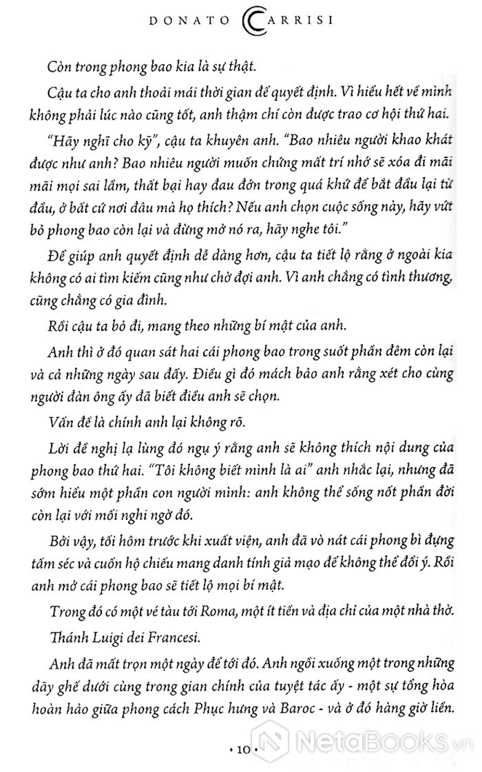Họ mới chỉ gặp nhau bốn lần, khi cô từ Milan tới Roma để điều tra về cái chết của chồng mình, gần ba năm trước. Marcus nhớ như in từng lời họ nói với nhau và từng chi tiết trên khuôn mặt cô. Đó là một trong những hệ quả của chứng mất trí nhớ: một bộ nhớ mới cần được lấp đầy.