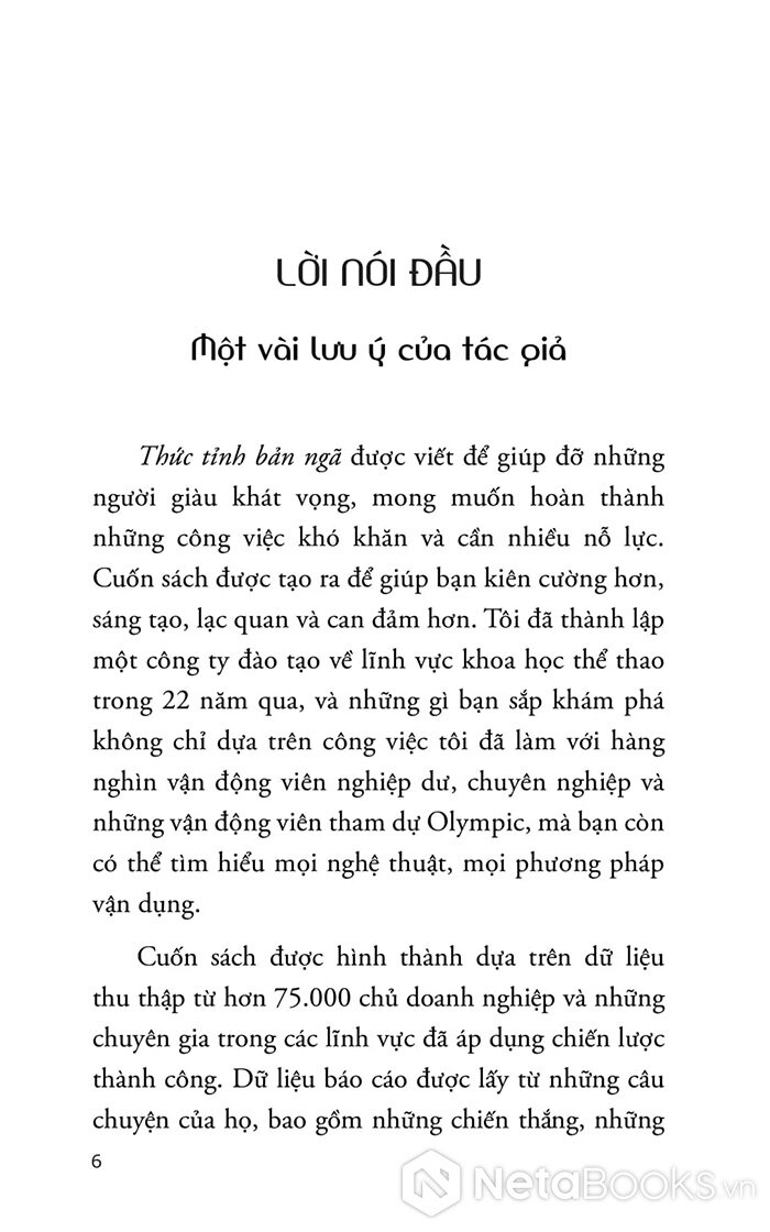 Không chỉ là một cuốn sách về tư duy tích cực “Thức tỉnh bản ngã” là một phương pháp thực chiến để bạn khai mở tiềm năng bị chôn giấu, đối diện với áp lực và tỏa sáng trong bất kỳ “sân chơi” nào của cuộc đời - từ công việc, thể thao đến nghệ thuật. Đọc xong cuốn sách này, bạn sẽ có thể: