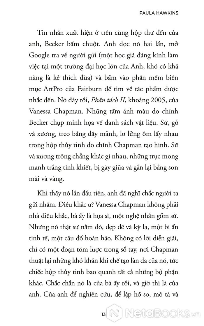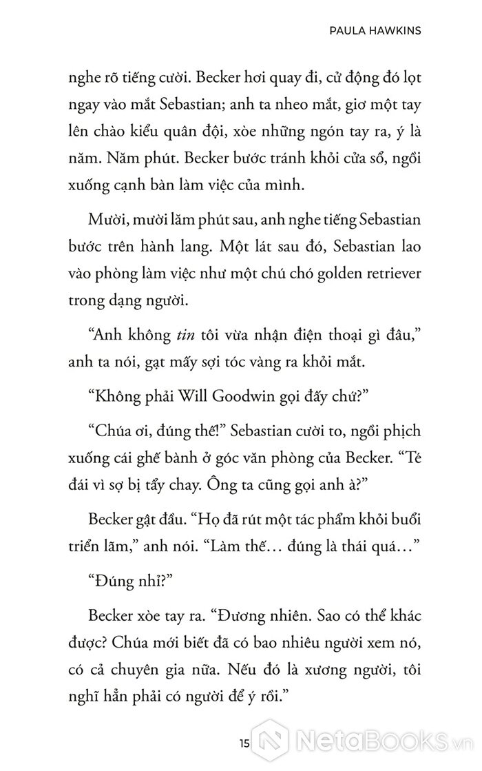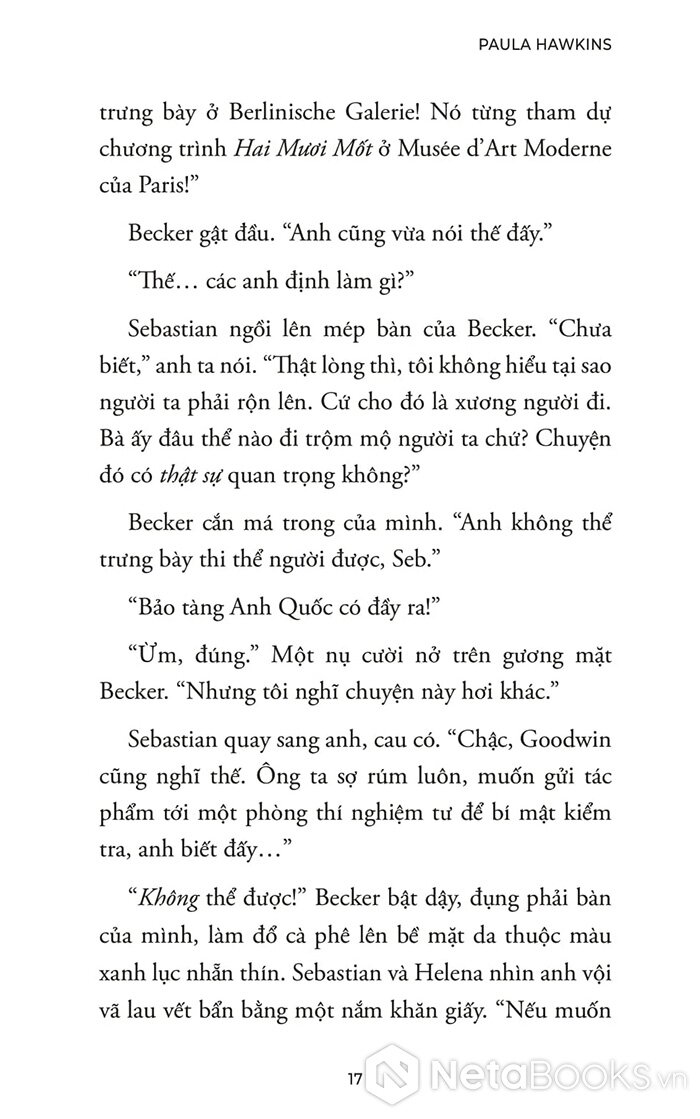 Paula Hawkins (sinh năm 1972) không đơn thuần là một nhà văn trinh thám kinh dị. Các tác phẩm của cô không chỉ đơn thuần là “ai đã làm gì” mà còn là “tại sao họ lại làm vậy” và “liệu chúng ta có thể tin tưởng lời kể của bất kỳ ai không?”. Thành công vang dội của “The Girl on the Train” đã đưa cô lên vị trí hàng đầu của thể loại này, và sau đó là “Into the Water” và “A Slow Fire Burning - Án mạng trên bến thuyền". Hawkins luôn khiến độc giả phải nghi ngờ mọi thứ, từ lời nói của nhân vật cho đến chính bản thân mình.