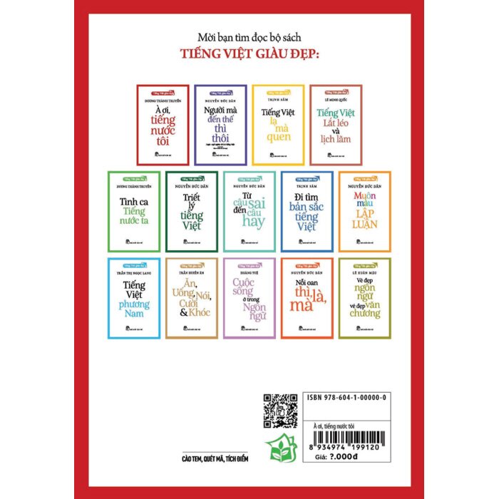 Sách Tiếng Việt Giàu Đẹp - À Ơi, Tiếng Nước Tôi - Dương Thành Truyền của tác giả Dương Thành Truyền, có bán tại Nhà sách online NetaBooks với ưu đãi Bao sách miễn phí và Gian hàng NetaBooks tại Tiki với ưu đãi Bao sách miễn phí và tặng Bookmark