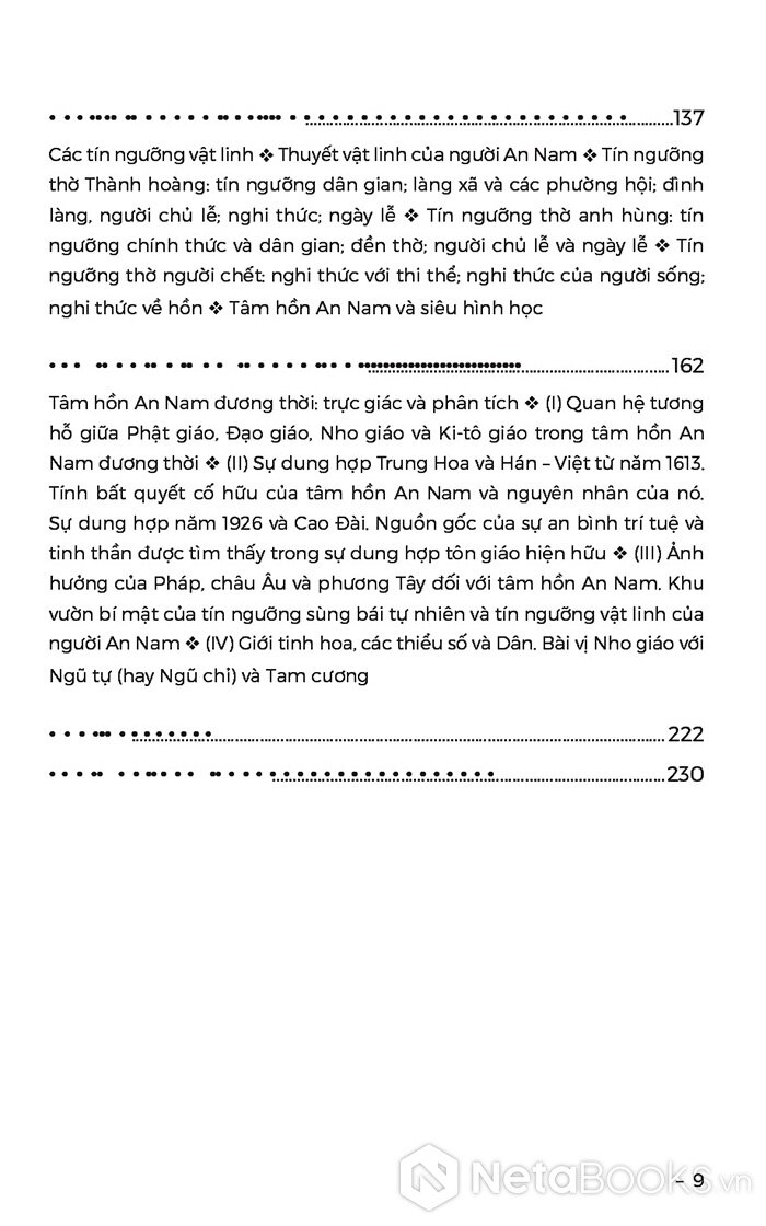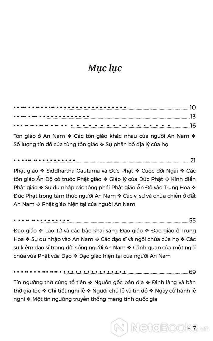 Mục lục cuốn sách Tín Ngưỡng Và Tôn Giáo An Nam