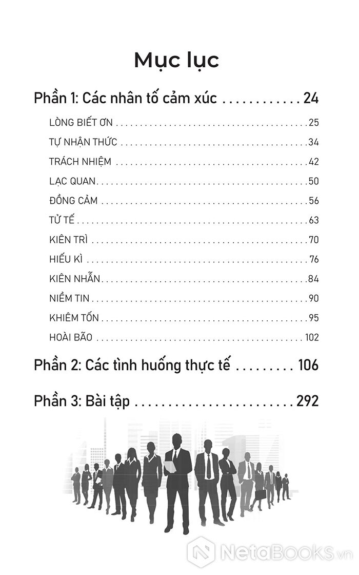 Cuốn sách được xây dựng xoay quanh 12 kỹ năng cảm xúc cốt lõi quyết định thành công lâu dài trong công việc và cuộc sống: Lòng biết ơn, Tự nhận thức, Trách nhiệm, Lạc quan, Đồng cảm, Lòng tốt, Kiên trì, Tò mò, Kiên nhẫn, Niềm tin, Khiêm tốn, Tham vọng.