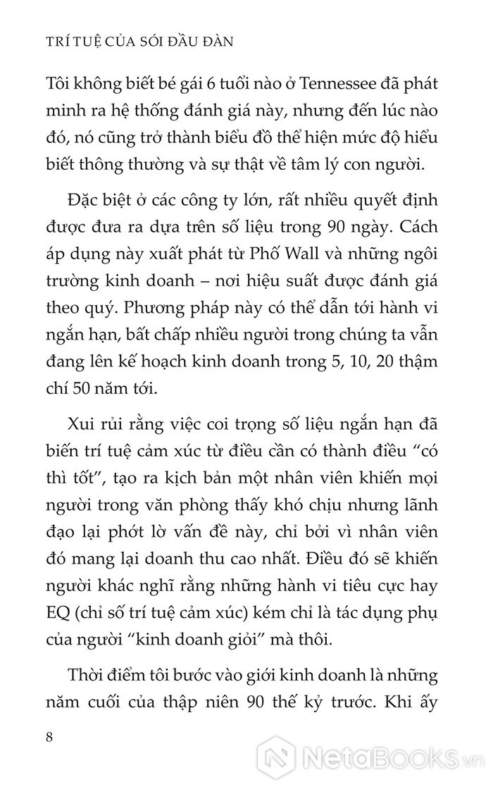 Trong cuốn sách “Trí tuệ của sói đầu đàn” tác giả Gary Vaynerchuk - doanh nhân và nhà tư duy kinh doanh hàng đầu thế giới, lập luận rằng: Trong một thế giới ngày càng cạnh tranh, minh bạch và kết nối, kỹ năng chuyên môn (IQ) là cần nhưng phẩm chất cảm xúc mới là yếu tố tạo nên lợi thế vượt trội. Thành công bền vững không đến từ chiến thuật tinh vi, mà từ cách chúng ta tư duy, cư xử và quản trị cảm xúc của chính mình.