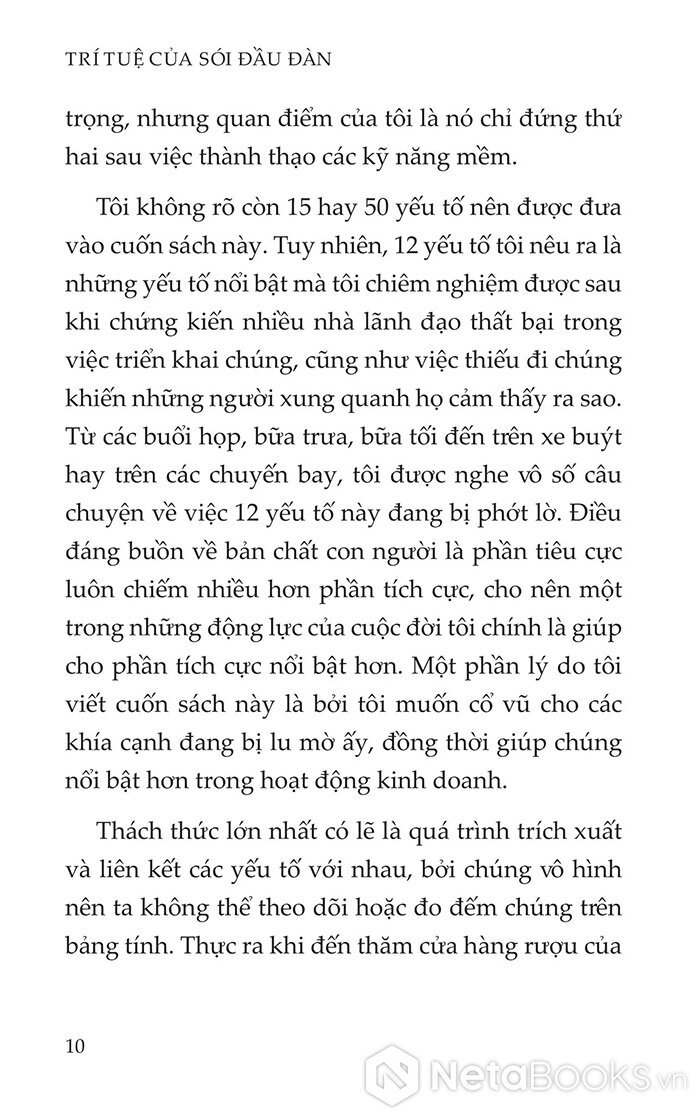 Những bài học trong cuốn sách “Trí tuệ của sói đầu đàn” nhắc nhở rằng: Một nhà lãnh đạo vĩ đại không chỉ giỏi về chiến lược mà còn giàu lòng nhân ái; không chỉ sắc bén về tư duy mà còn sâu sắc về cảm xúc. Khi chúng ta rèn luyện trí tuệ cảm xúc, chúng ta không chỉ trở thành người lãnh đạo tốt hơn, mà còn trở thành phiên bản tốt hơn của chính mình.