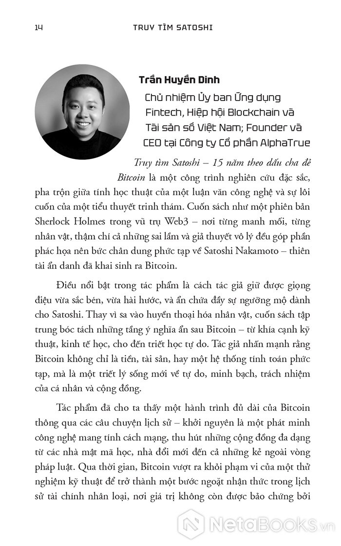 Đánh giá, nhận xét dành cho cuốn sách Truy Tìm Satoshi - 15 Năm Theo Dấu Cha Đẻ Bitcoin