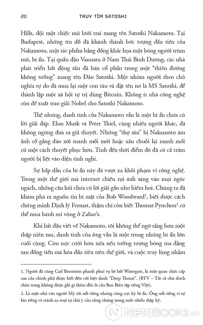 Sách Truy Tìm Satoshi - 15 Năm Theo Dấu Cha Đẻ Bitcoin của tác giả Benjamin Wallace, có bán tại Nhà sách online NetaBooks với ưu đãi Bao sách miễn phí và Gian hàng NetaBooks tại Tiki với ưu đãi Bao sách miễn phí và tặng Bookmark