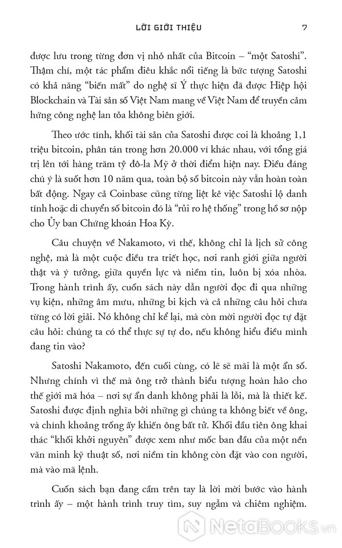 Cuốn sách không chỉ là hành trình truy tìm danh tính thật của Nakamoto, mà còn là câu chuyện về quyền lực, tự do tài chính, và bản chất của niềm tin trong kỷ nguyên số.