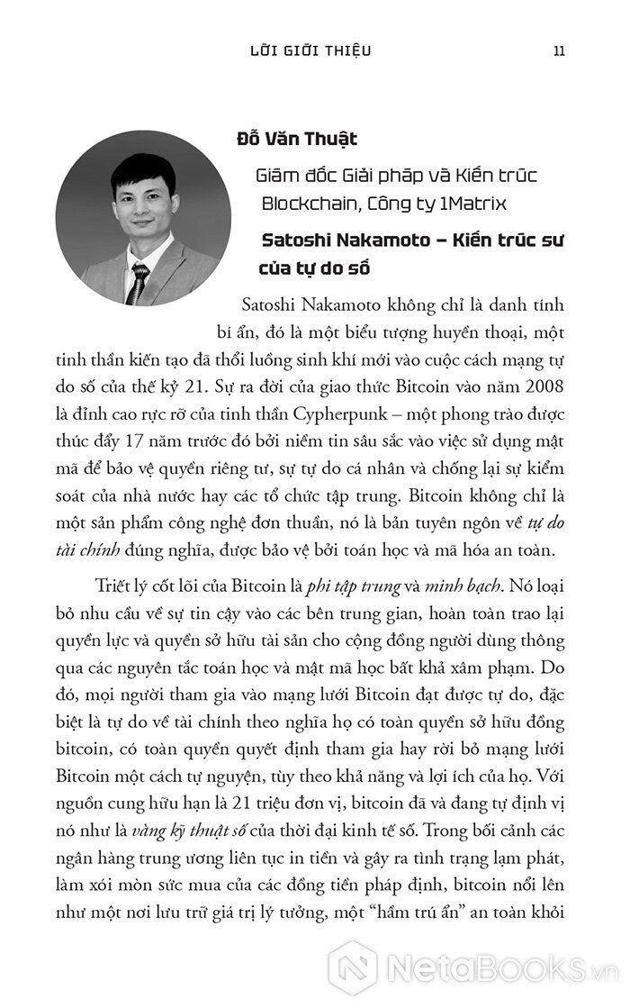 “Bitcoin không chỉ là sản phẩm công nghệ - đó là bản tuyên ngôn về tự do tài chính được bảo vệ bởi toán học và mã hóa.” - Anh Đỗ Văn Thuật, Giám đốc Giải pháp & Kiến trúc Blockchain, 1Matrix