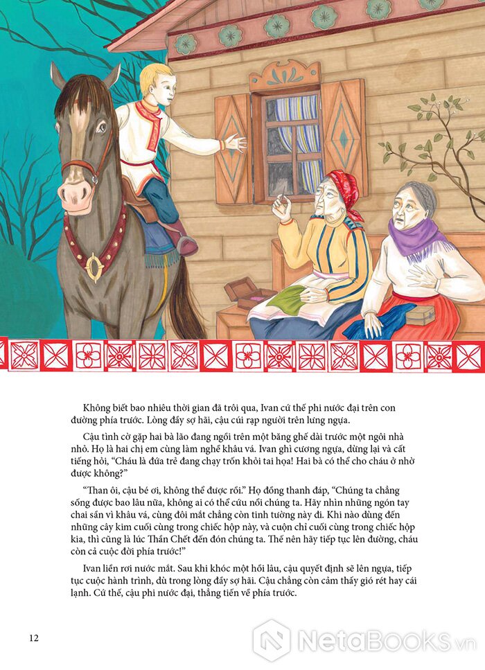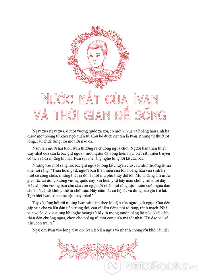 Với cuốn sách này, các bạn nhỏ sẽ bước vào một hành trình tuyệt vời qua những vùng đất rộng lớn: từ đồng bằng Siberia đến dãy núi Altai, từ thảo nguyên mênh mông tới Biển Trắng, từ cánh rừng bạch dương phủ tuyết đến những nơi rực rỡ ánh nắng… để lắng nghe những câu chuyện dân gian lấp lánh sắc màu, vừa mới lạ, hấp dẫn, lại vừa ý nghĩa và sâu sắc đến không ngờ.