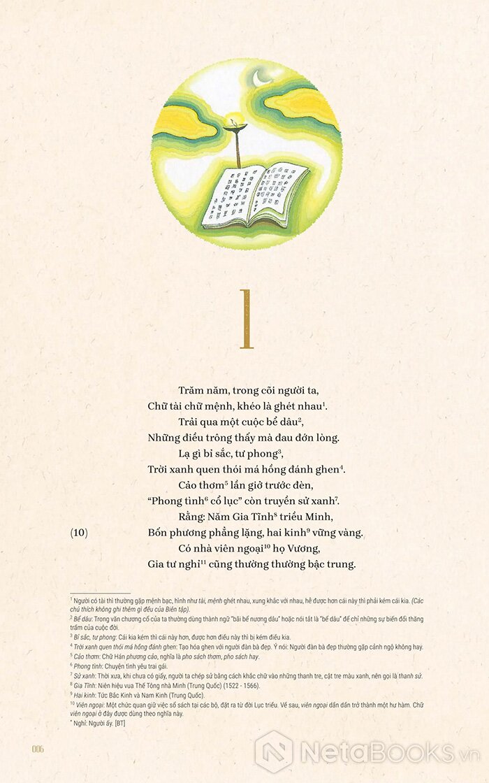 “Truyện Kiều” là một kiệt tác của văn học trung đại Việt Nam. Với 3254 câu thơ được viết theo thể lục bát, tác phẩm kể về cuộc đời của Thúy Kiều - một người con gái tài sắc vẹn toàn nhưng phải trải qua nhiều sóng gió truân chuyên. “Truyện Kiều” đã đi vào tâm thức của người Việt suốt hơn hai thế kỉ qua.