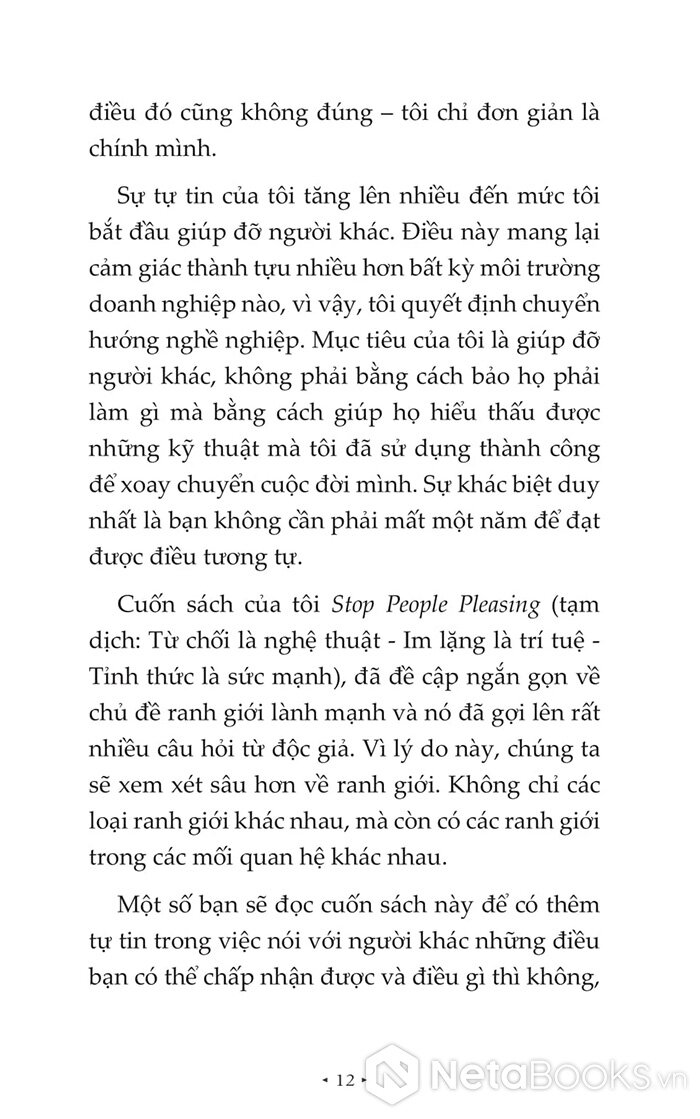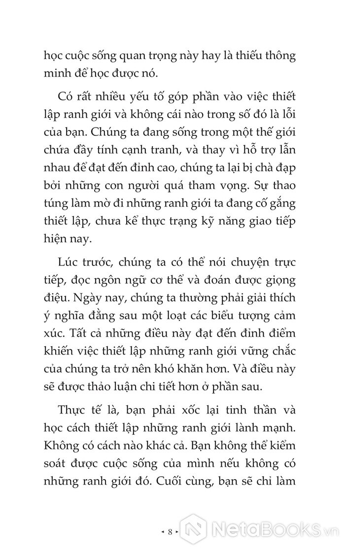 Trong một thế giới tốc độ cao, nơi con người bị kéo giãn bởi kỳ vọng, trách nhiệm và vô số mối quan hệ, khả năng thiết lập ranh giới lành mạnh trở thành một năng lực sống còn. Cuốn sách mang đến một lộ trình rõ ràng, thực tế và có tính ứng dụng cao, được xây dựng dựa trên tâm lý học hành vi và trải nghiệm thật của tác giả.