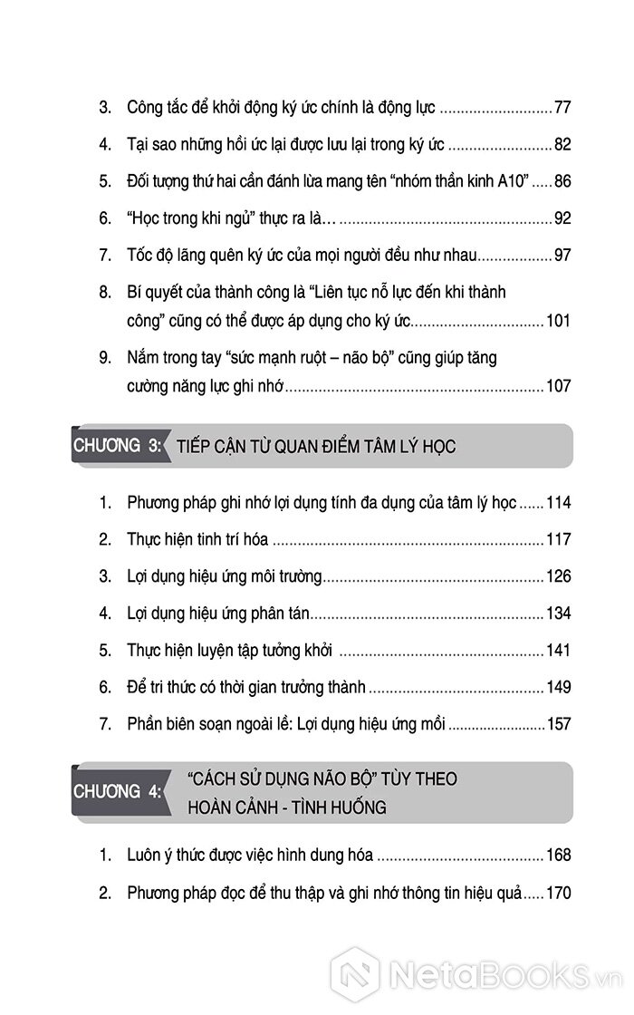 - Phần giữa lý giải cơ chế ghi nhớ của não bộ, kết hợp kiến thức tâm lý học và thần kinh học ở mức đơn giản, giúp người đọc hiểu bản chất thay vì học vẹt kỹ thuật.
