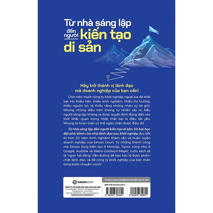 "Làm người sáng lập đã khó. Từ người sáng lập trở thành nhà lãnh đạo xuất sắc càng khó hơn". Đó là sự đúc kết đầy thấu cảm của Simon Court - chuyên gia huấn luyện lãnh đạo với hơn 25 năm kinh nghiệm đồng hành cùng các "kỳ lân" tỷ đô. Cuốn sách “Từ nhà sáng lập đến người kiến tạo di sản” là bản lộ trình dành cho những ai đang muốn thoát khỏi sự hỗn loạn để xây dựng một doanh nghiệp vĩ đại và bền vững.