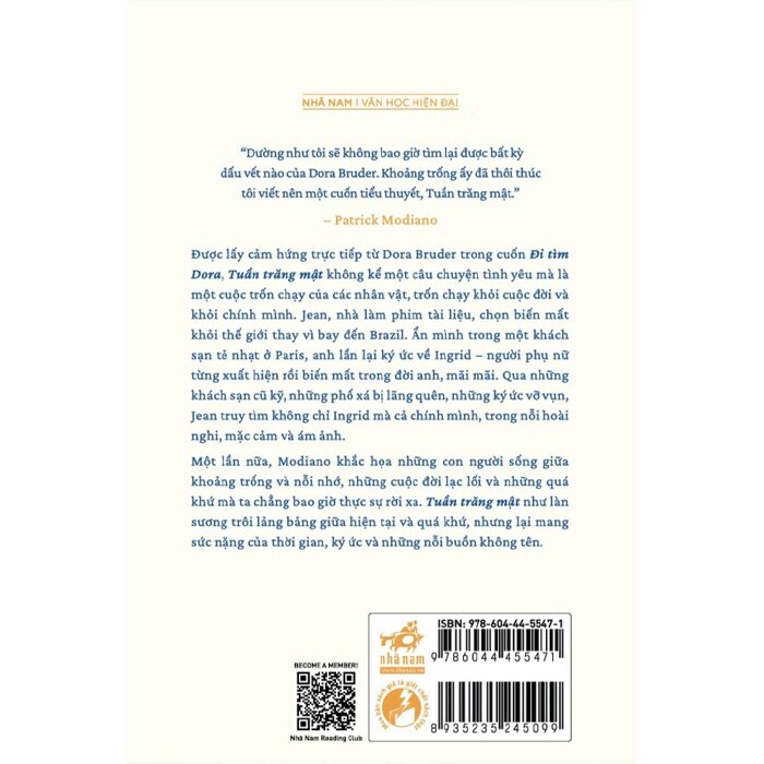 Một lần nữa, Modiano khắc họa những con người sống giữa khoảng trống và nỗi nhớ, những cuộc đời lạc lối và những quá khứ mà ta chẳng bao giờ thực sự rời xa. Tuần trăng mật như làn sương trôi lãng bảng giữa hiện tại và quá khứ, nhưng lại mang sức nặng của thời gian, ký ức và những nỗi buồn không tên.