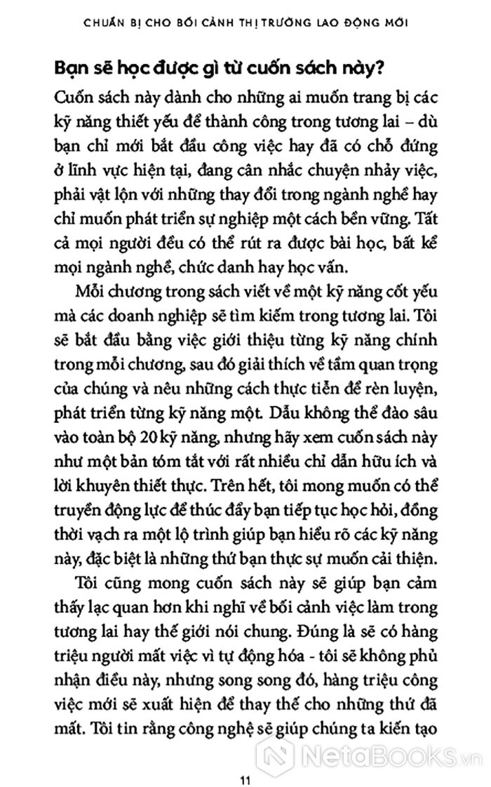 Quyển sách này dành cho những ai muốn trang bị các kỹ năng thiết yếu để thành công trong tương lai - dù bạn chỉ mới bắt đầu sự nghiệp hay đã có chỗ đứng ở lĩnh vực hiện tại, đang cân nhắc chuyển nghề, vật lộn với những thay đổi trong ngành hay chỉ muốn phát triển công việc một cách bền vững. Tất cả mọi người đều có thể rút ra được bài học, bất kể mọi ngành nghề, chức danh hay học vấn.