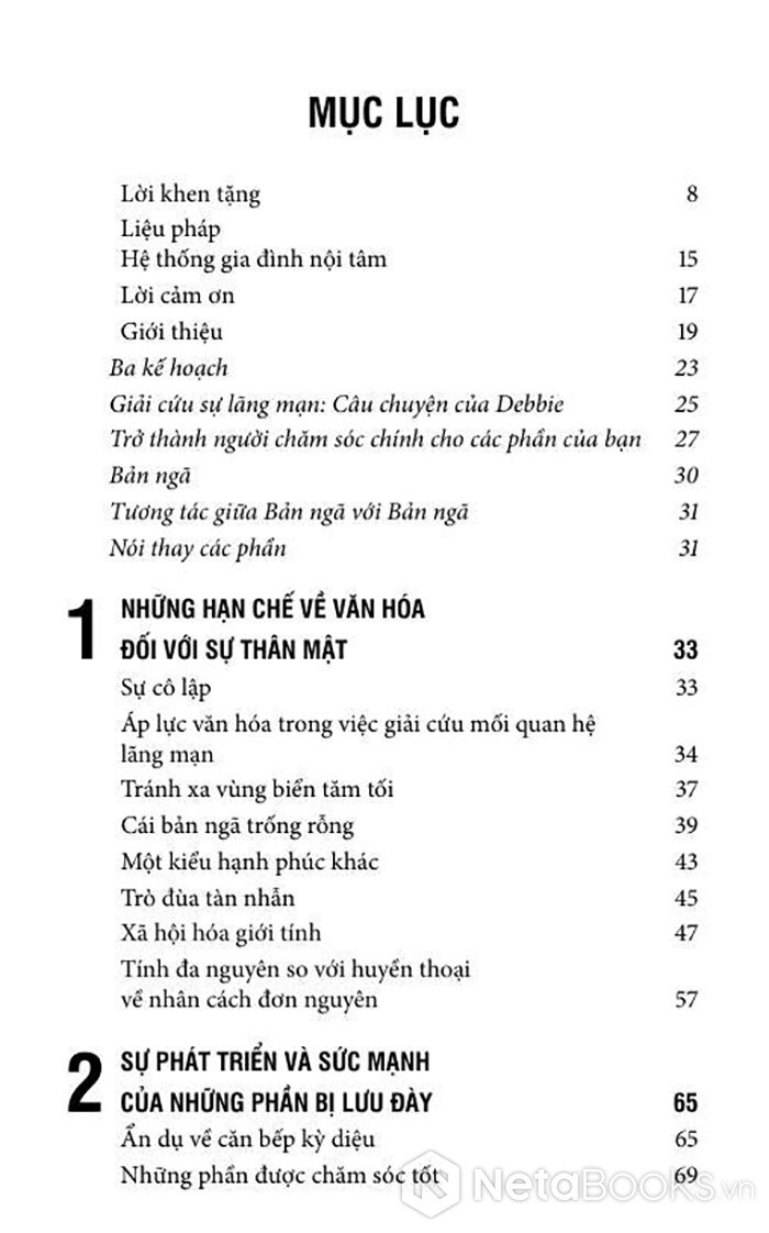 Nhận thức đột phá của IFS là tâm trí chúng ta chứa đựng nhiều phần, mỗi phần có một cuộc sống riêng. Hầu hết các vấn đề trong mối quan hệ nảy sinh bởi vì chúng ta vô tình tạo gánh nặng cho đối phương bằng nhiệm vụ chăm sóc những phần bị chối bỏ và không được yêu thương của mình. Trong cuốn sách này, bạn sẽ khám phá những hiểu biết sâu sắc và công cụ thiết yếu để nuôi dưỡng cuộc đối thoại lành mạnh với các phần của bạn và đối tác, bao gồm: