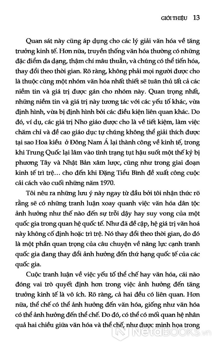 Để trả lời câu hỏi này, tác giả đi sâu phân tích vai trò của văn hóa trong việc định hình con đường phát triển và năng lực cạnh tranh của các quốc gia. Ông chỉ ra rằng di sản Nho giáo, từng bị xem là lực cản của hiện đại hóa, trên thực tế đã trở thành một nguồn lực quan trọng giúp giải thích tốc độ tăng trưởng nhanh của các xã hội Đông Á, đặc biệt là sự trỗi dậy của Trung Quốc trong những thập niên gần đây.