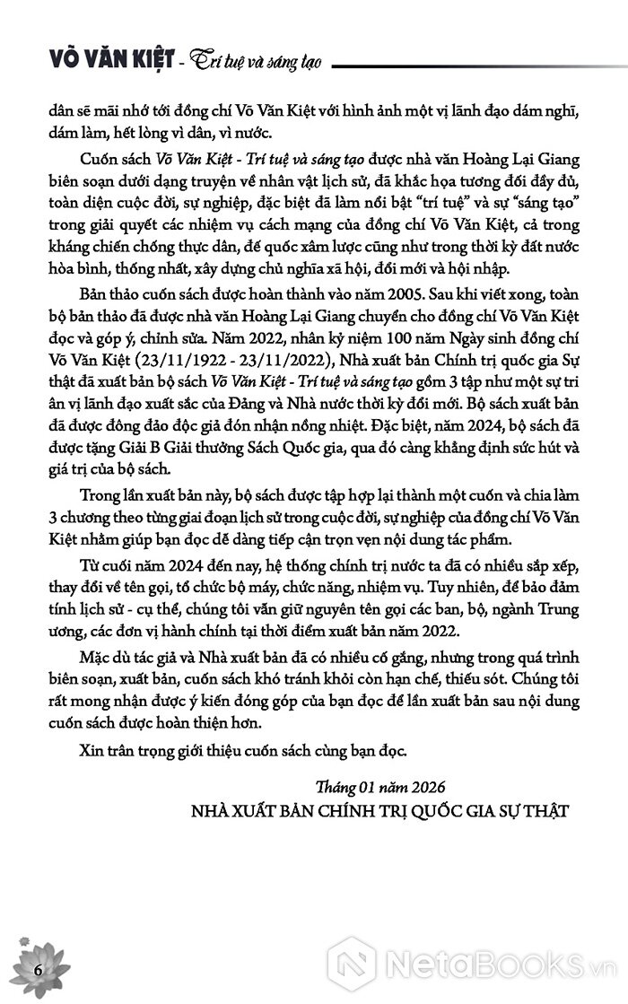 Sách Võ Văn Kiệt - Trí Tuệ Và Sáng Tạo của tác giả Hoàng Lại Giang, có bán tại Nhà sách online NetaBooks với ưu đãi Bao sách miễn phí và Gian hàng NetaBooks tại Tiki với ưu đãi Bao sách miễn phí và tặng Bookmark