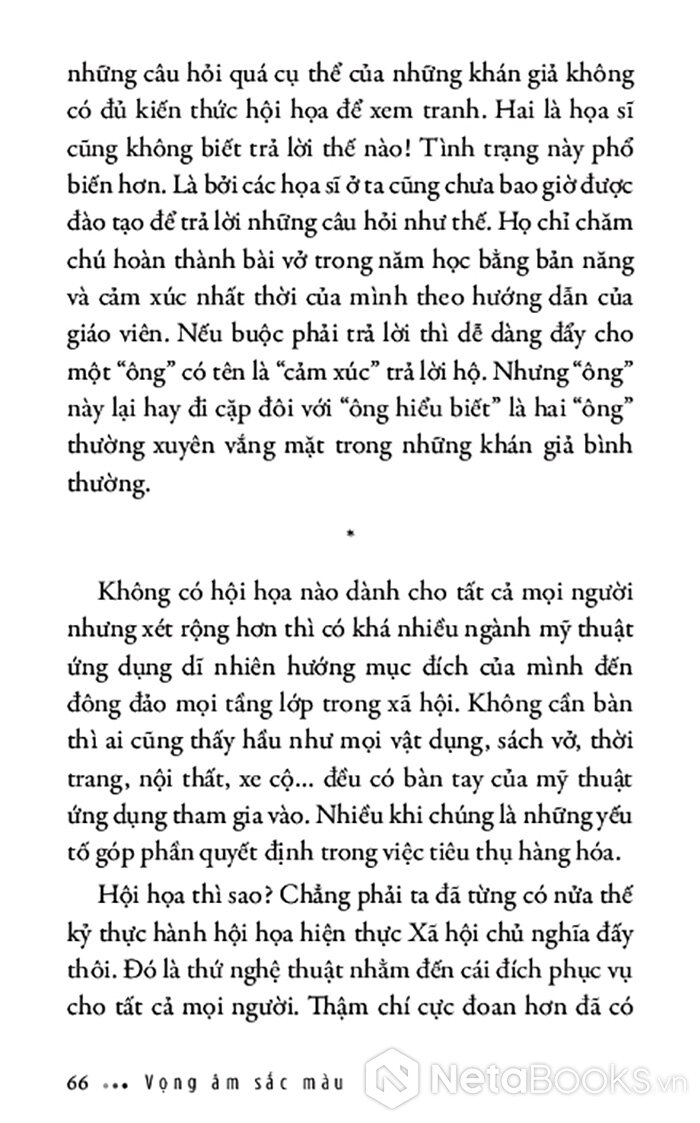 Không chỉ dành cho giới mỹ thuật, cuốn sách này dành cho bất kỳ ai từng dừng lại thật lâu trước một bức tranh, để suy tư và lắng nghe vọng âm sắc màu.
