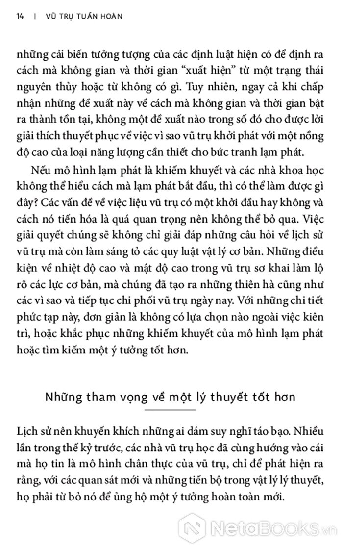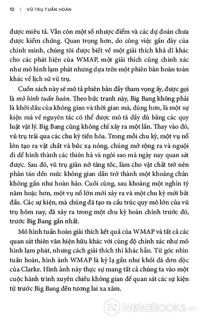 VŨ TRỤ TUẦN HOÀN đưa ra câu trả lời cho các vấn đề tồn tại đã nhiều năm của mô hình Big Bang, đồng thời đưa ra một cách nhìn mới đầy khiêu khích về cả quá khứ lẫn tương lai của vũ trụ. Đây là 'lý thuyết có thể lý giải bí ẩn vũ trụ'.