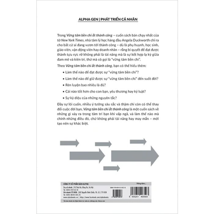 Trong Vững tâm bền chí ắt thành công - cuốn sách bán chạy nhất theo New York Times, nhà tâm lý học hàng đầu Angela Duckworth chỉ ra cho bất cứ ai đang vươn tới thành công - dù là phụ huynh, học sinh, giáo viên, vận động viên hay doanh nhân - rằng bí quyết để đạt được thành tựu rực rỡ không phải là tài năng mà là sự kết hợp lạ kỳ giữa đam mê và kiên trì, thứ mà cô gọi là “vững tâm bền chí”.
