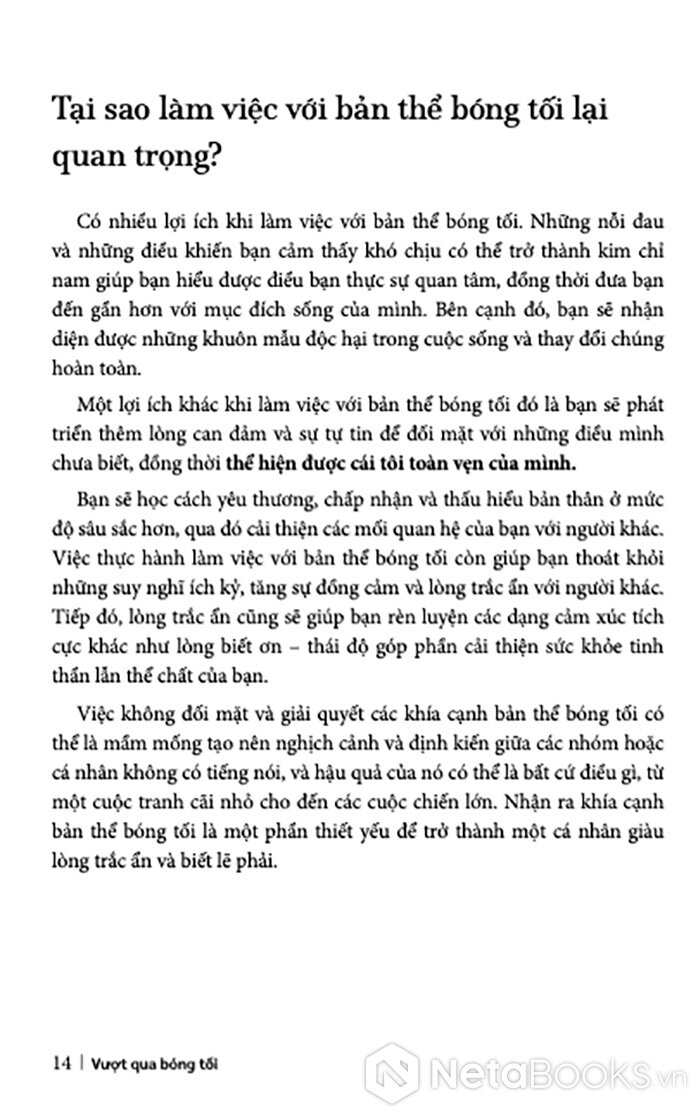 Vượt Qua Bóng Tối mời ta đi chậm lại, lắng nghe mình kỹ hơn, và chấp nhận rằng chữa lành là cuộc hành trình dài hơi. Nhưng mỗi trang sách giống như một ngọn đèn nhỏ, đủ để soi lối cho ta tiến thêm một bước trên con đường trở về với bản thể sáng trong của chính mình. Đây là cuốn sách dành cho những ai đã từng lạc lối, từng tổn thương, từng khao khát được hiểu mình sâu sắc hơn và sẵn sàng can đảm chạm vào bóng tối để tìm thấy ánh sáng.