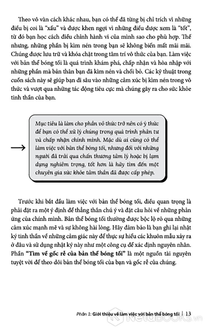 Sau khi trở thành hiện tượng toàn cầu với hơn một triệu bản bán ra và lan truyền mạnh mẽ trên TikTok, cuốn sách nay được giới thiệu đến độc giả Việt Nam với bản dịch chính thức. Dựa trên nền tảng tư tưởng của Carl Jung - người khai sinh khái niệm “bản thể bóng tối”, tác phẩm mở ra một hành trình khám phá nội tâm bằng sự thấu cảm và tự soi chiếu. Ở đó, người đọc không chỉ đọc, mà còn trải nghiệm; không chỉ suy ngẫm, mà còn thực hành; vừa là người quan sát, vừa là người lắng nghe tiếng nói mỏng manh nhất từ phần vô thức của mình.